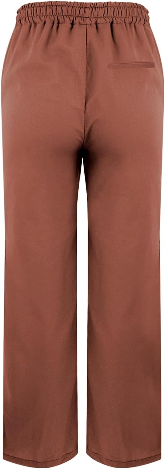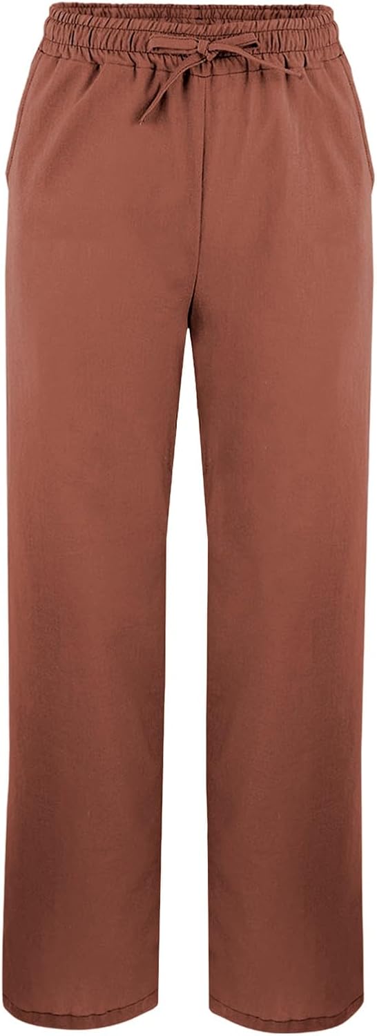 Questi pantaloni da donna uniscono stile e comfort grazie al tessuto in misto cotone e lino (65% cotone, 35% lino), che garantisce morbidezza, traspirabilità e durata. La vita elastica si adatta a diverse forme corporee, mentre il design a gamba larga a 9 punti offre un look moderno e rilassato, ideale per movimenti fluidi.